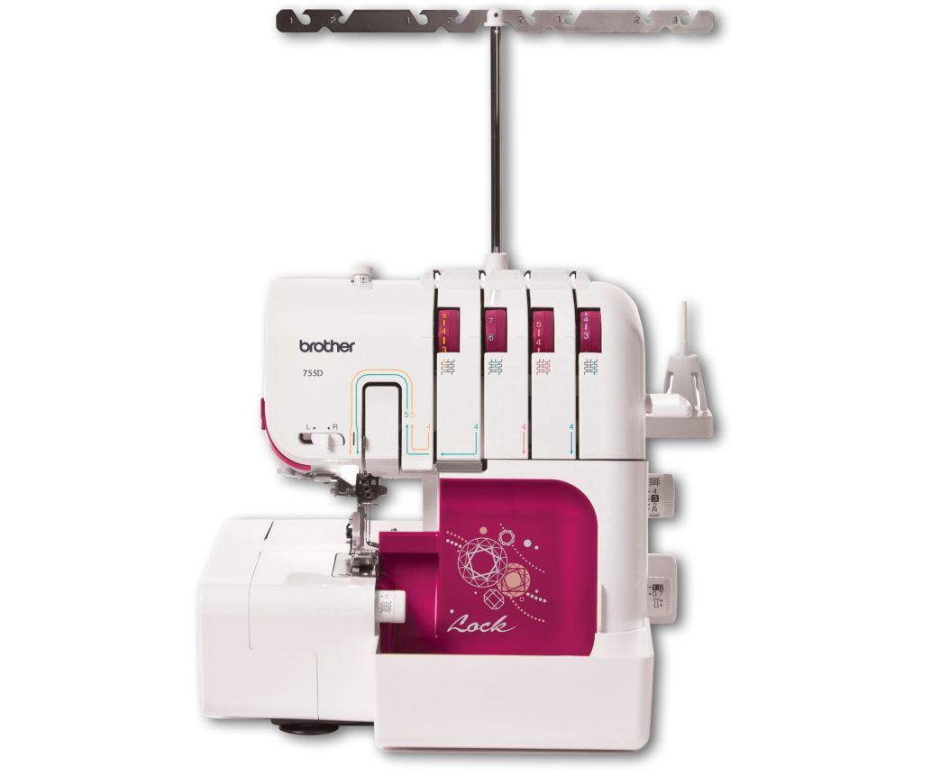 Оверлок BROTHER 755D превосходно выполняет ролевые швы и создает необыкновенные декоративные эффекты. Наделен простой системой заправки нитей и системой быстрой заправки нижнего петлителя F.A.S.T., обметывает 2/3/4-мя нитями срезы и обрезает излишки ткани за один прием. Съемный рукав помогает сэкономить время и достичь профессионального результата в обработке манжетов, рукавов, штанин брюк.