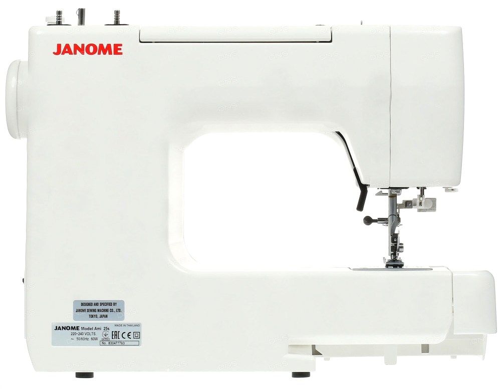 Практична і проста в домашньому використанні швейна машинка JANOME Ami 25s для всіх видів тканин. Доповнює серію електромеханічних швейних машин JANOME Ami. JANOME Ami 25s має 19 швейних операцій та оснащена класичним вертикальним човником і призначена для шиття і ремонту одягу з будь-яких тканин. Додаткова зручність роботи - автоматично обметує петлі з вимірюванням розміру гудзиків і має вбудований нитковтягувач нитки в голку.